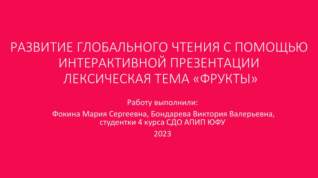 1. РАЗВИТИЕ ГЛОБАЛЬНОГО ЧТЕНИЯ С ПОМОЩЬЮ ИНТЕРАКТИВНОЙ ПРЕЗЕНТАЦИИ ЛЕКСИЧЕСКАЯ ТЕМА «ФРУКТЫ»