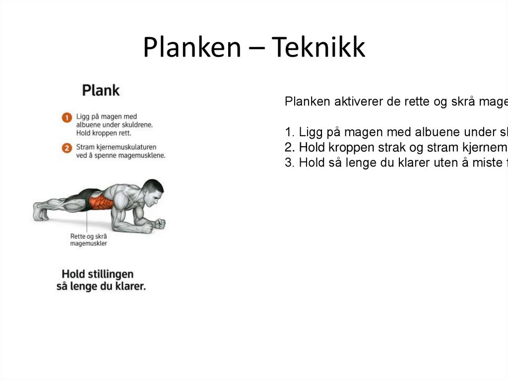 Planken – TeknikkPlanken aktiverer de rette og skrå mage