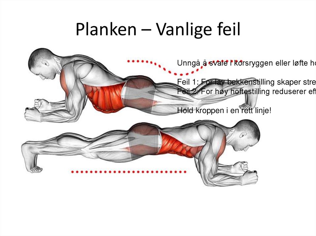 Planken – Vanlige feilUnngå å svaie i korsryggen eller løfte ho