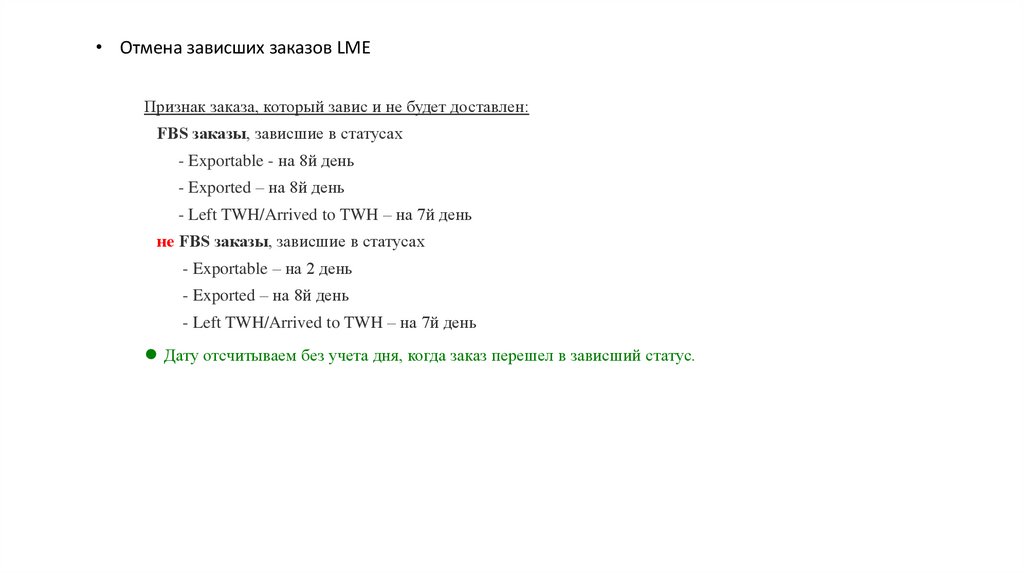 • Отмена зависших заказов LMEПризнак заказа, который завис и не будет доставлен: