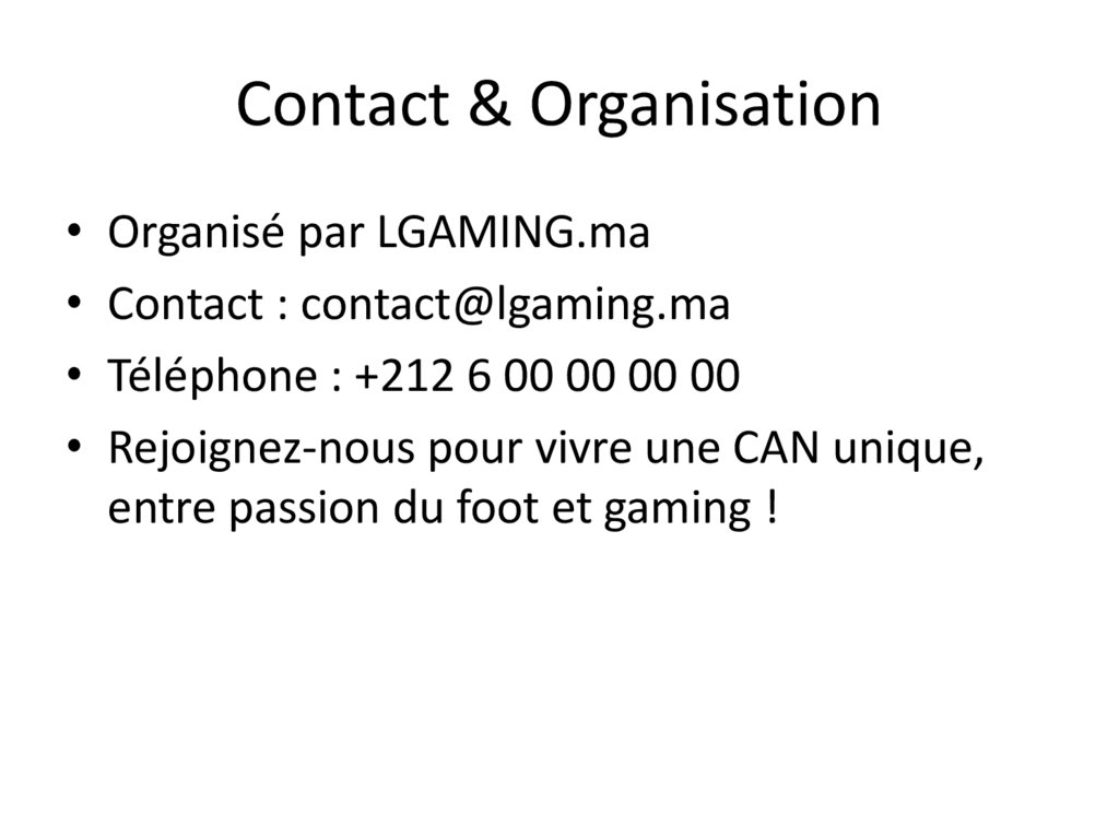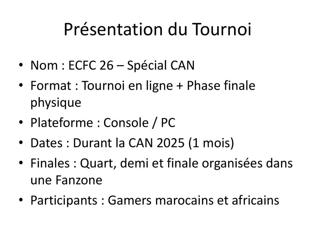 Présentation du Tournoi• Nom : ECFC 26 – Spécial CAN