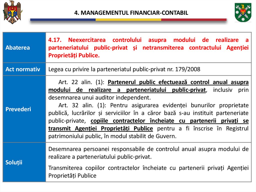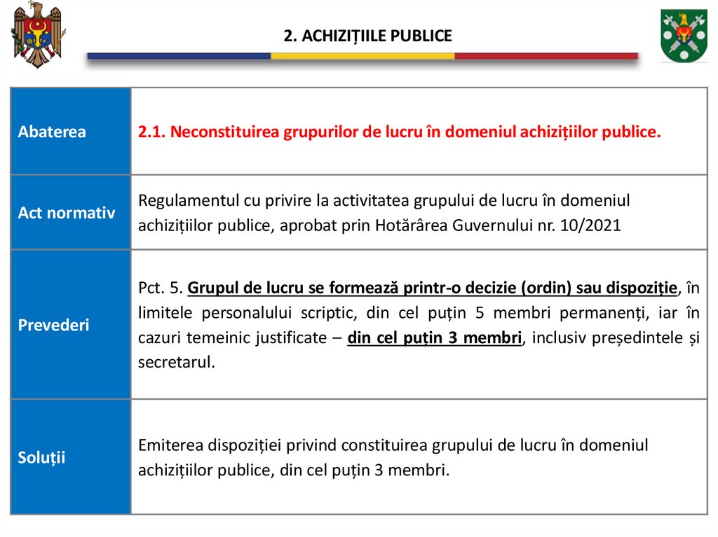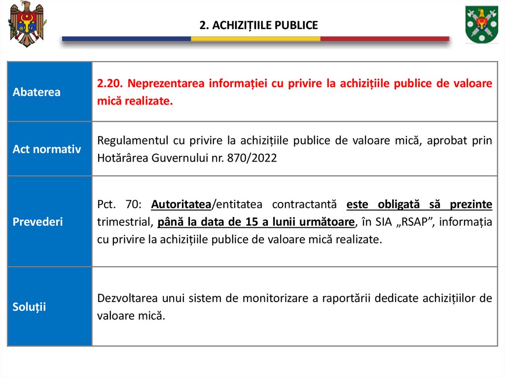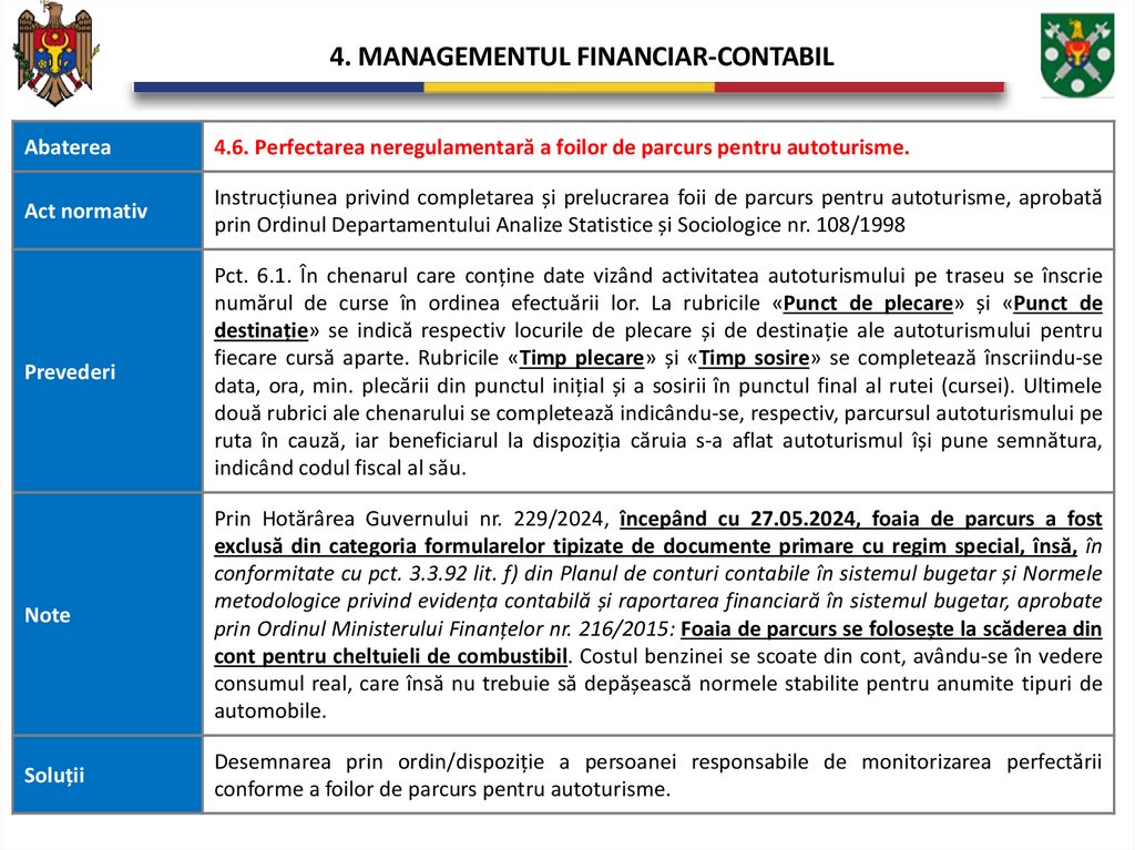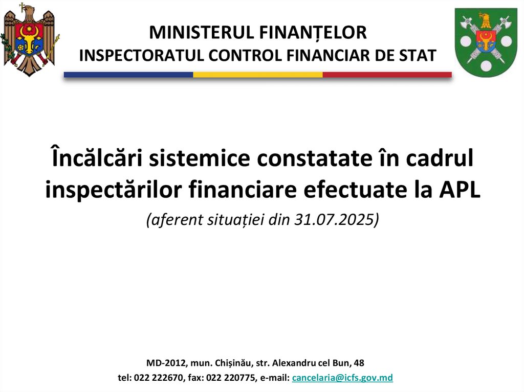 Încălcări sistemice constatate în cadrulinspectărilor financiare efectuate la APL
