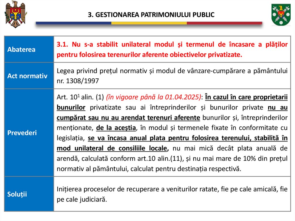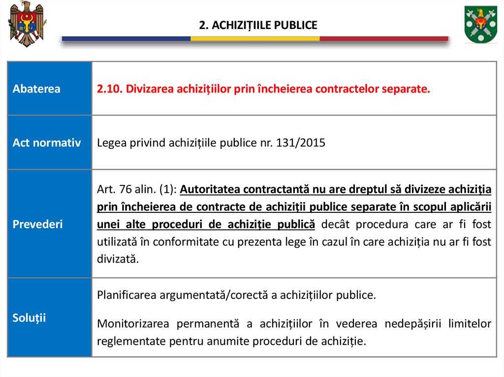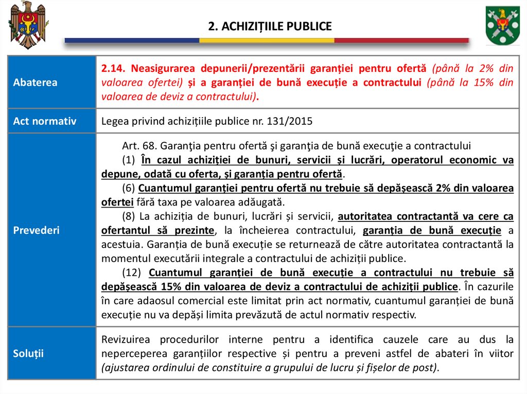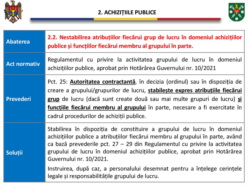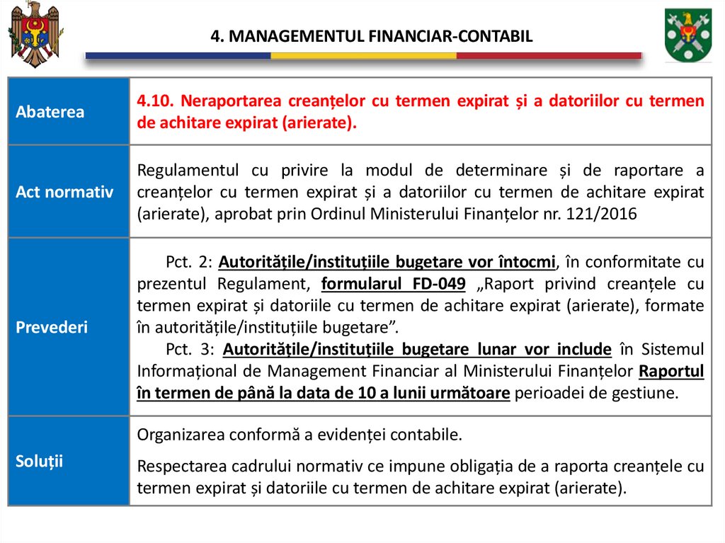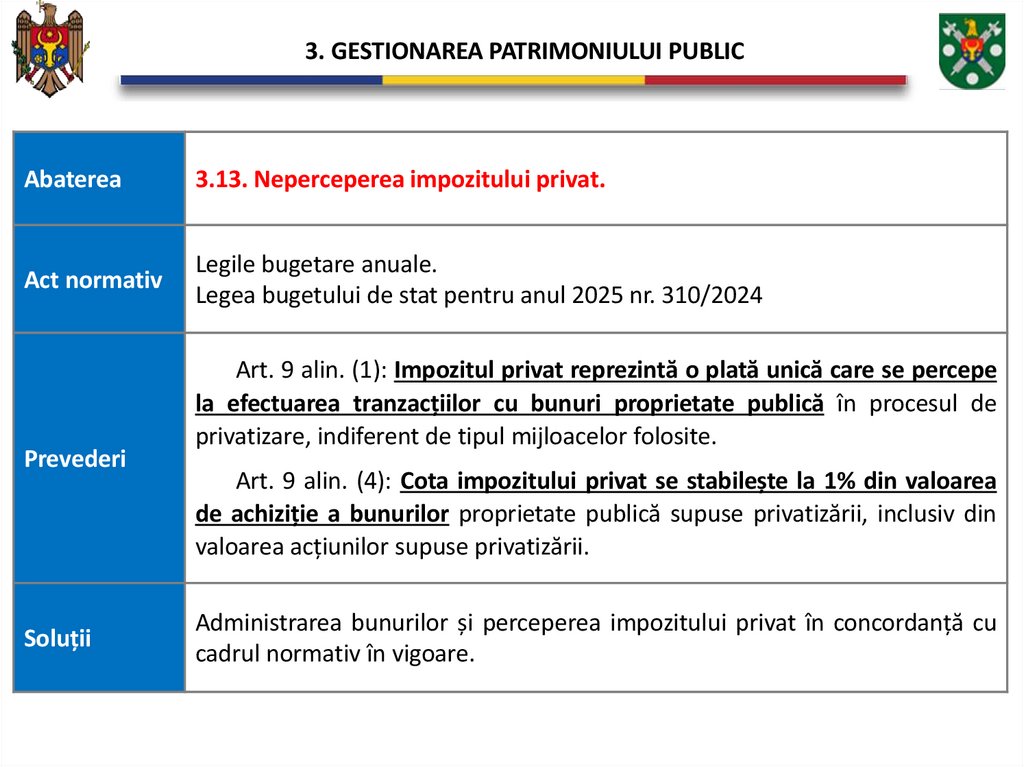 Încălcări sistemice constatate în cadrulinspectărilor financiare efectuate la APL