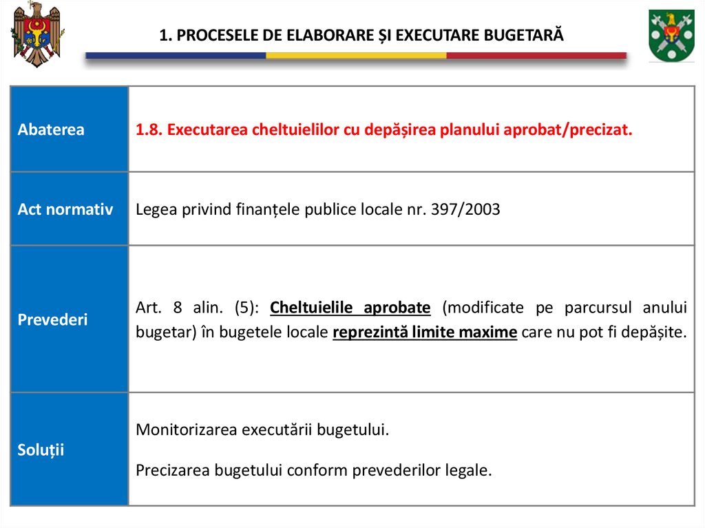 1.8. Executarea cheltuielilor cu depășirea planului aprobat/precizat.