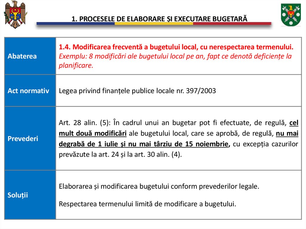 1.4. Modificarea frecventă a bugetului local, cu nerespectarea termenului.