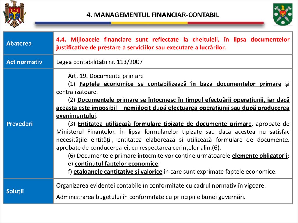 4.19. Acceptarea spre contabilizare a documentelor primare întocmite
