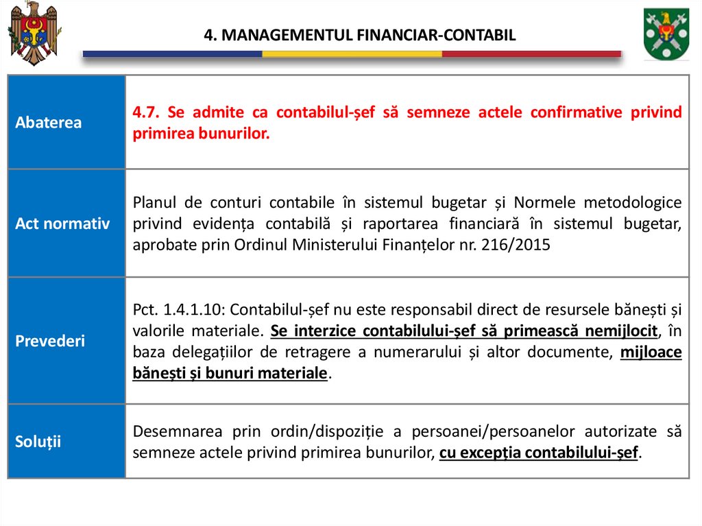Pct. 1.4.1.4 lit. g): Conducătorul autorității/instituției bugetare este obligat