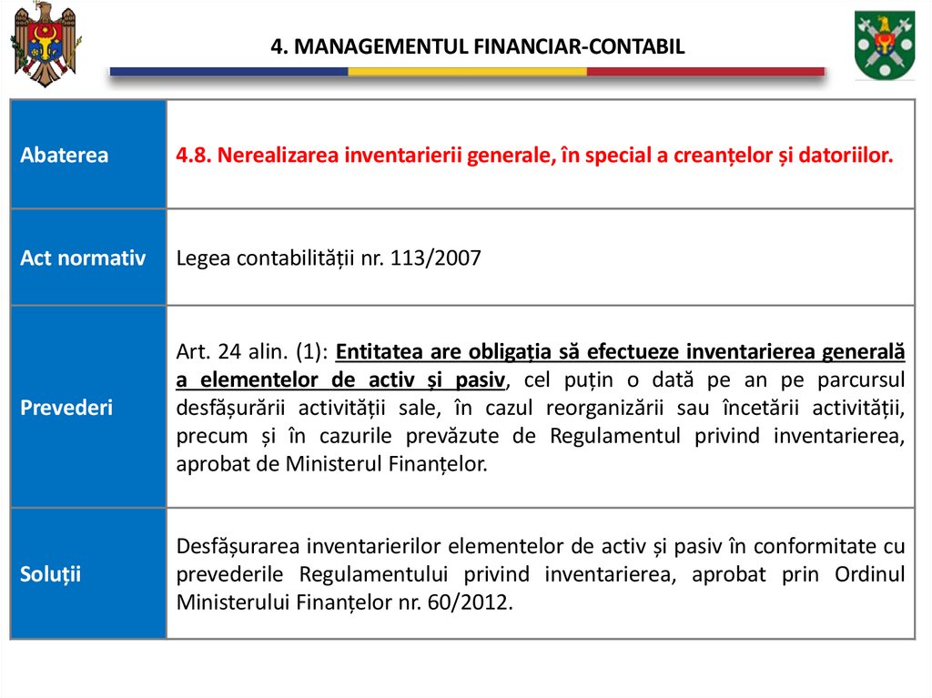 Art. 13 alin. (2) lit. f): Conducătorului entității este obligat să asigure