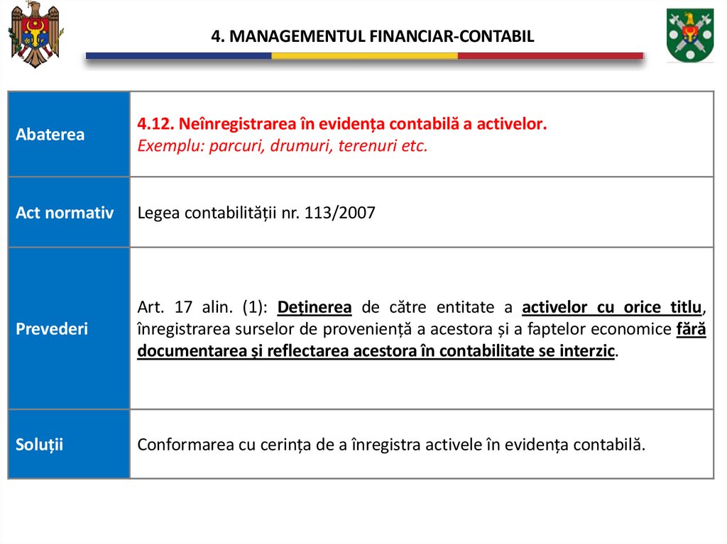 Pct. 1.4.3.1 lit. a): Pentru a tine evidenta contabilă este necesar de a asigura