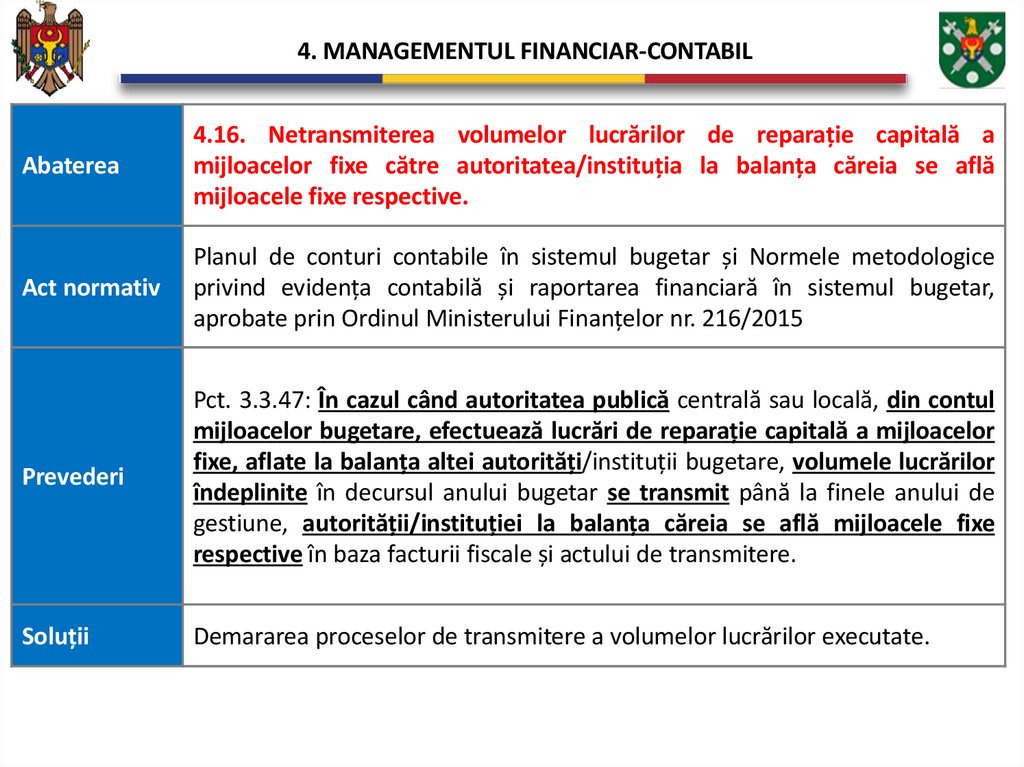 4.16. Netransmiterea volumelor lucrărilor de reparație capitală a
