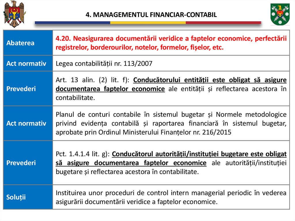 4.20. Neasigurarea documentării veridice a faptelor economice, perfectării