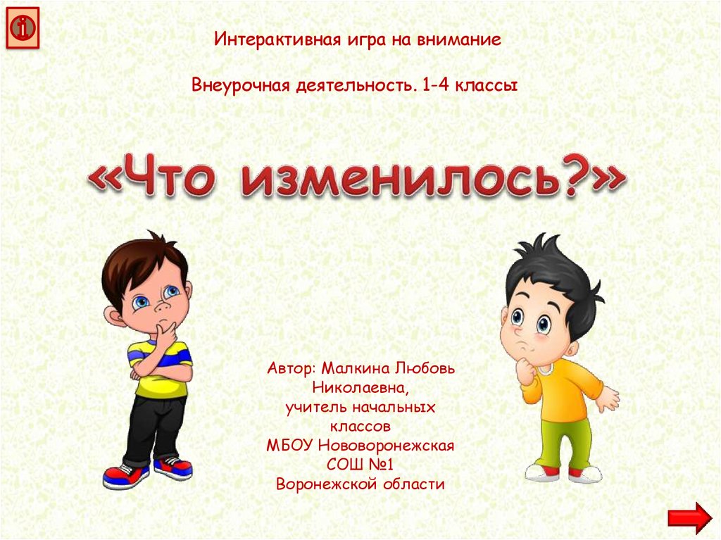 Что изменилось? Интерактивная игра на внимание. Внеурочная деятельность. 1-4 классы