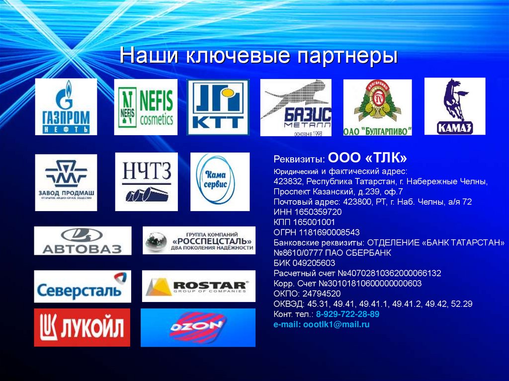 Реквизиты: ООО «ТЛК»Юридический и фактический адрес: