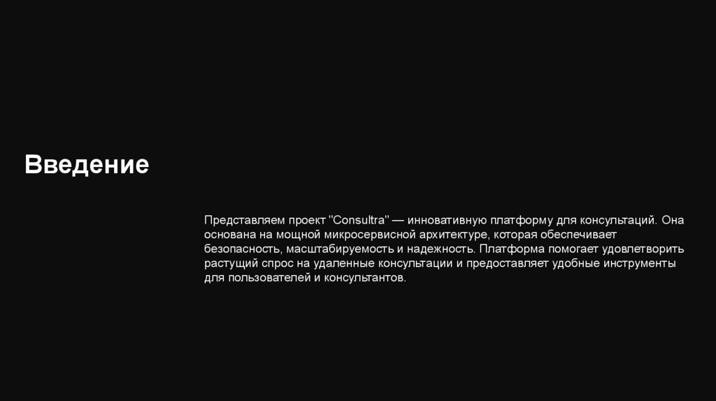 ВведениеПредставляем проект "Consultra" — инновативную платформу для консультаций. Она
