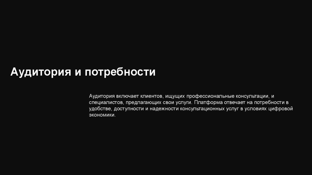 Аудитория и потребностиАудитория включает клиентов, ищущих профессиональные консультации, и
