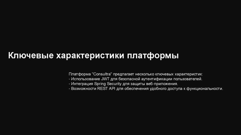 Ключевые характеристики платформыПлатформа "Consultra" предлагает несколько ключевых характеристик: