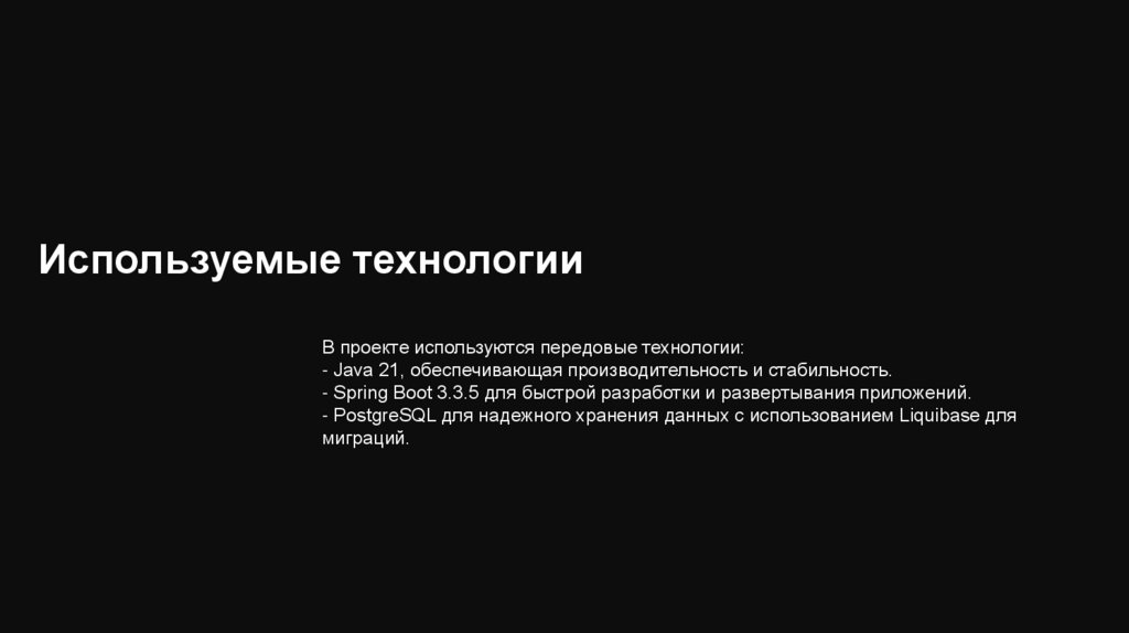 - PostgreSQL для надежного хранения данных с использованием Liquibase для