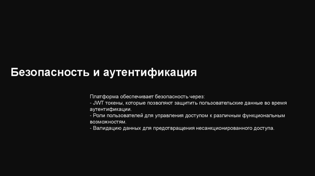 Безопасность и аутентификацияПлатформа обеспечивает безопасность через: