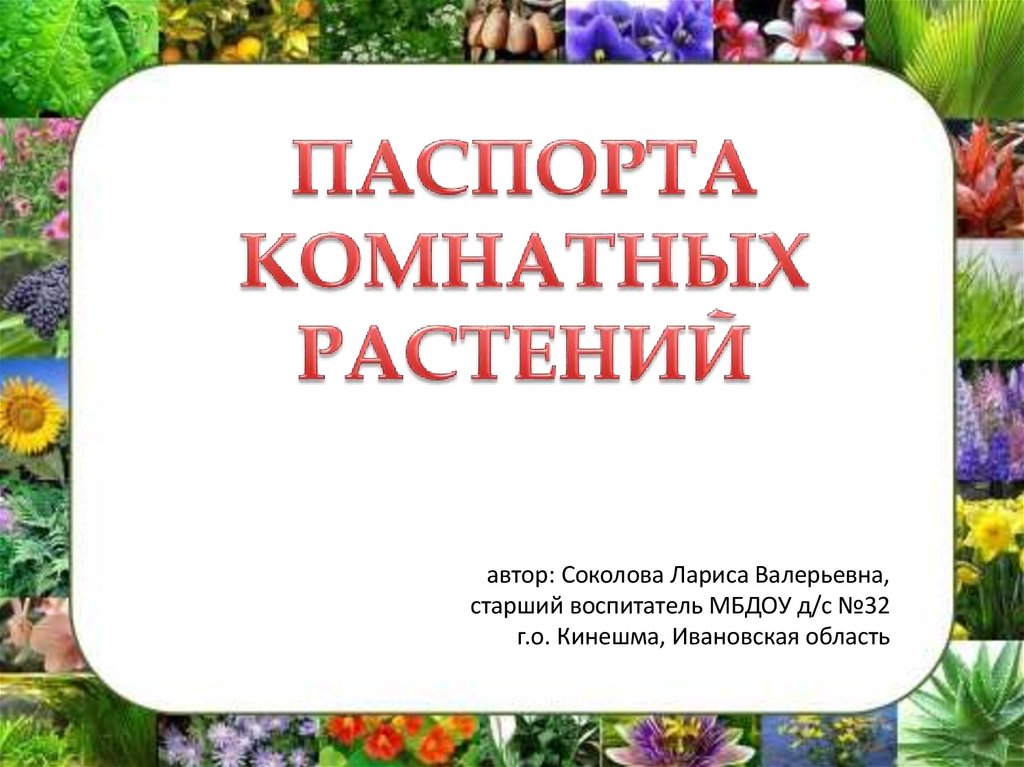 Паспорт комнатных растений. Комнатные растения в детском саду