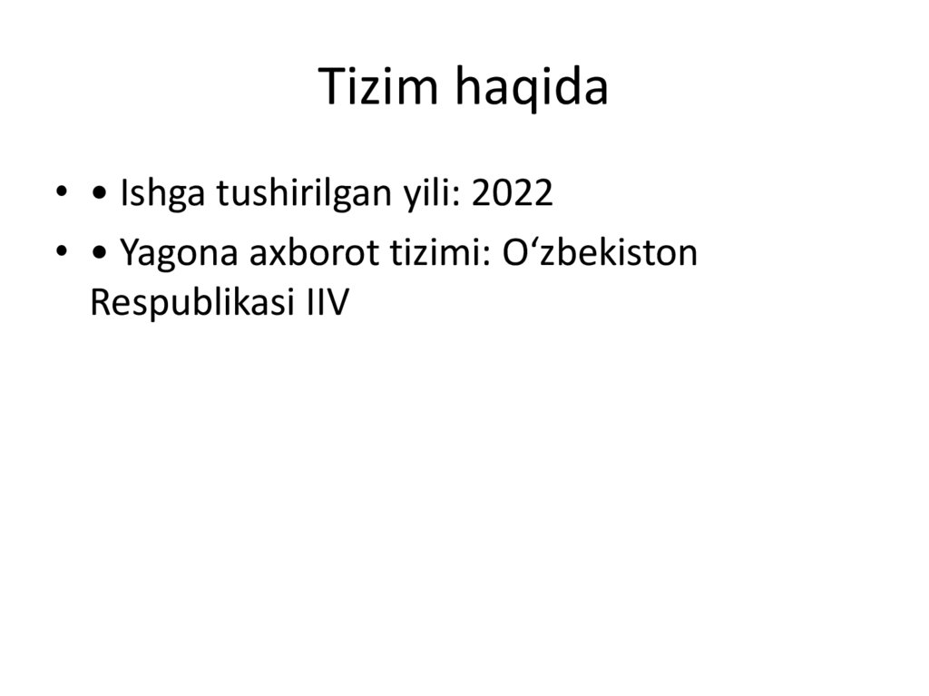 Tizim haqida• • Ishga tushirilgan yili: 2022