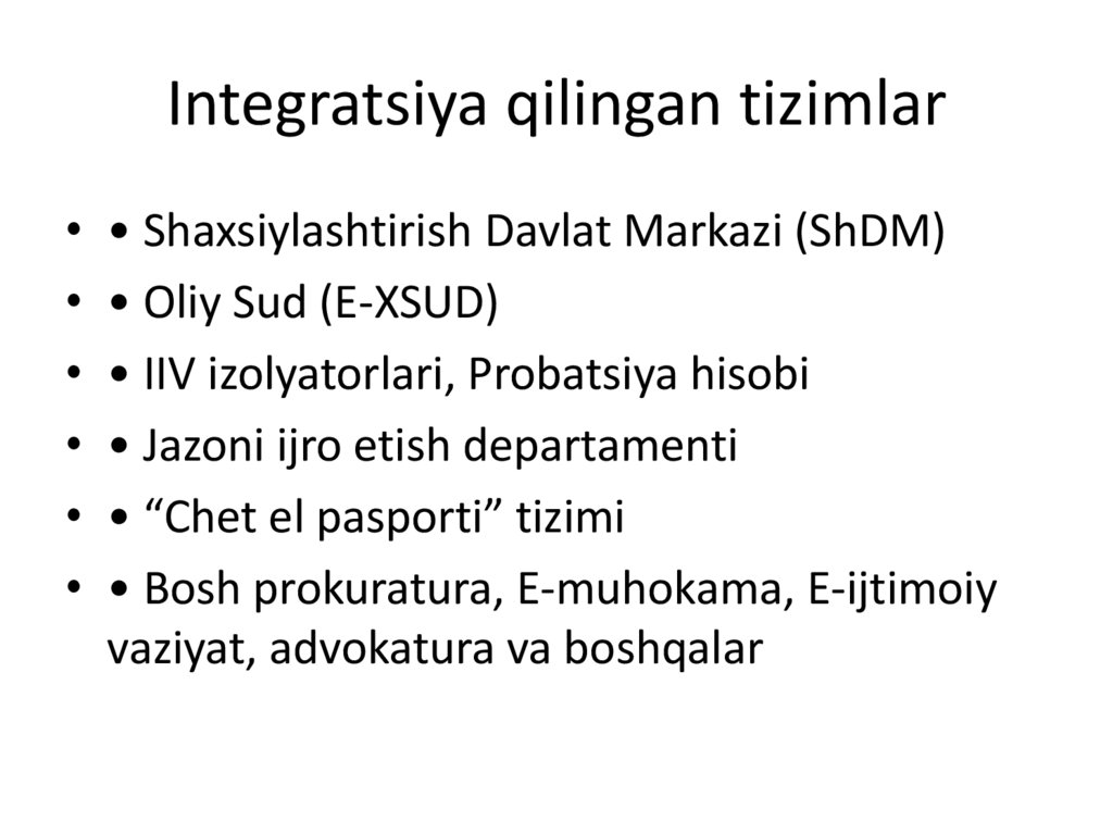 Integratsiya qilingan tizimlar• • Shaxsiylashtirish Davlat Markazi (ShDM)