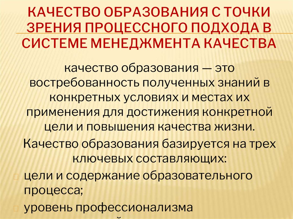 КАЧЕСТВО ОБРАЗОВАНИЯ С ТОЧКИЗРЕНИЯ ПРОЦЕССНОГО ПОДХОДА В
