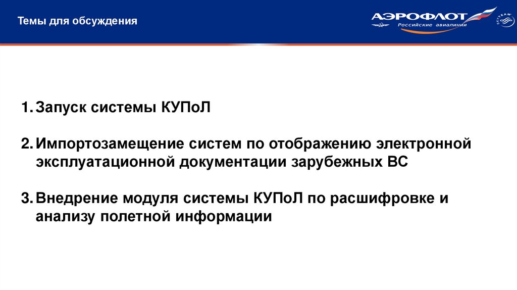 1. Запуск системы КУПоЛ2. Импортозамещение систем по отображению электронной