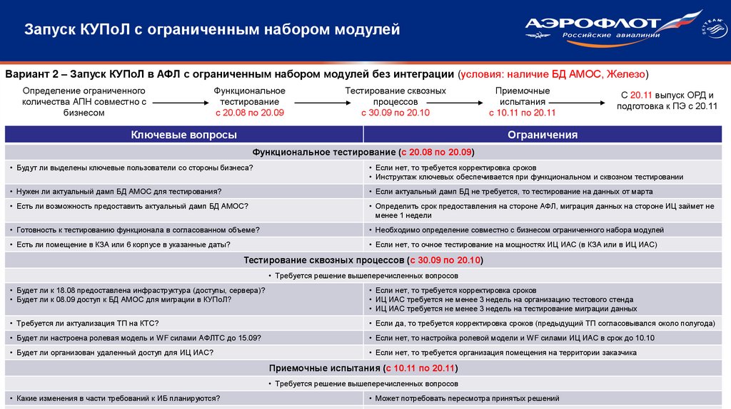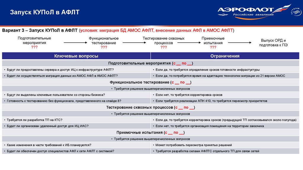 Вариант 3 – Запуск КУПоЛ в АФЛТ (условия: миграция БД АМОС АФЛТ, внесение данных АФЛ в АМОС АФЛТ)