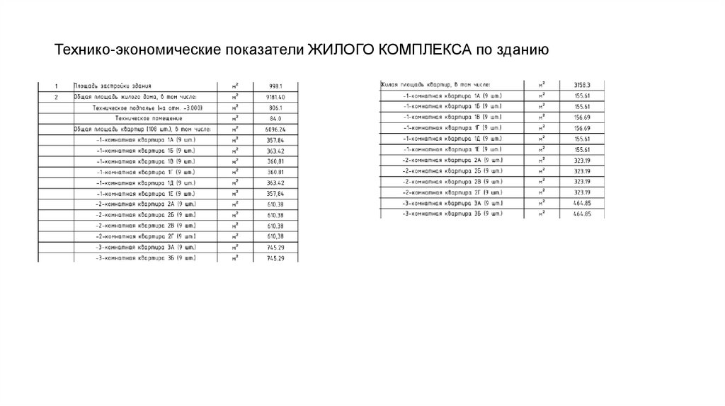 3. Технико-экономические показатели ЖИЛОГО КОМПЛЕКСА по зданию