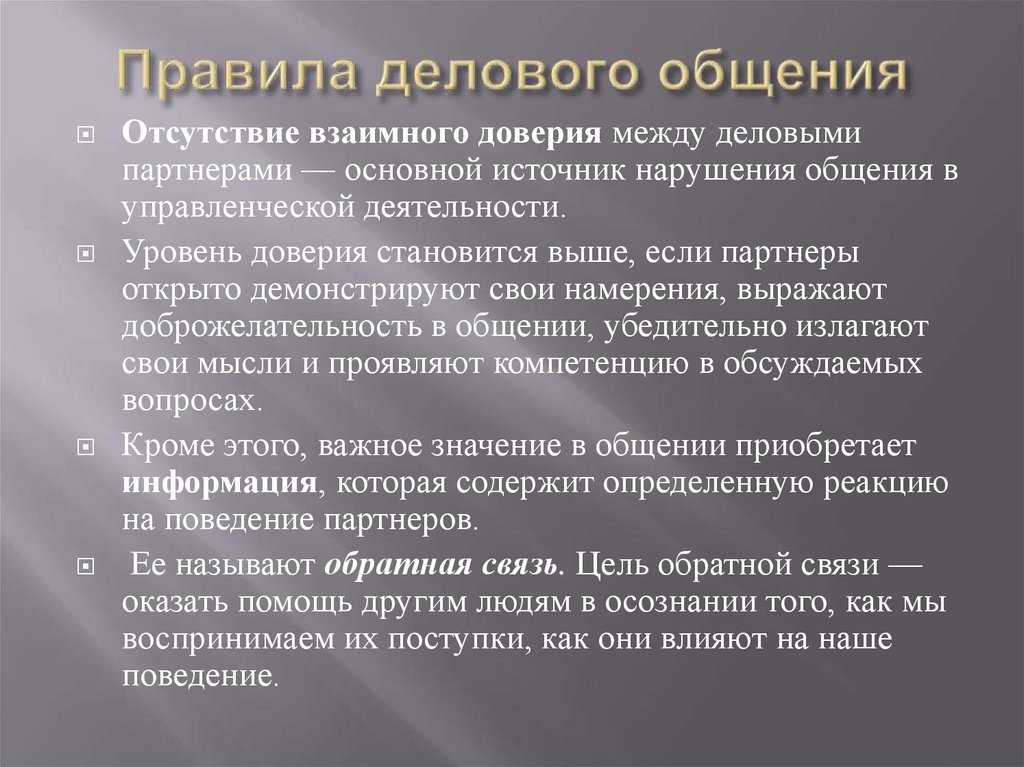 Отсутствие взаимного доверия между деловымипартнерами — основной источник нарушения общения в