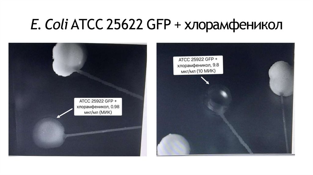 E. Coli ATCC 25622 GFP + хлорамфеникол7.
