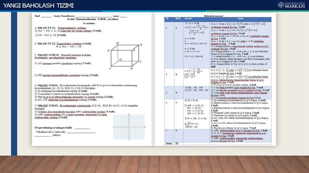 munosabatidan kelib chiqib belgilangan. Yangicha baholash tizimida esa inson