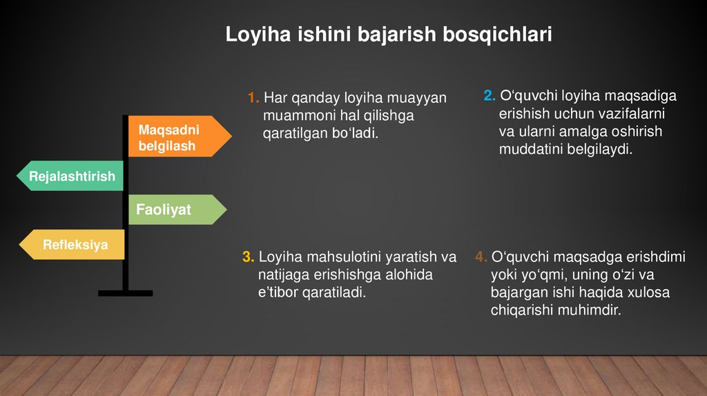 Loyiha ishini bajarish bosqichlariMaqsadni