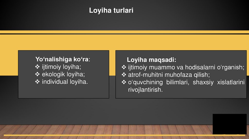 Loyiha turlariLoyiha yo‘nalishiga ko‘ra: