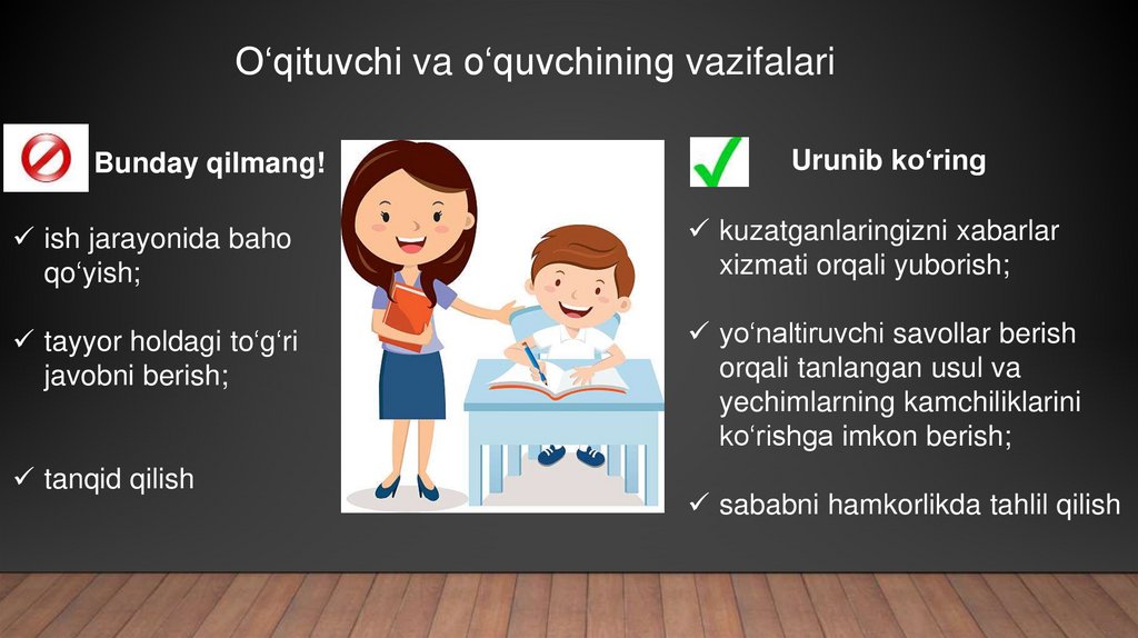 O‘qituvchi va o‘quvchining vazifalariBunday qilmang!