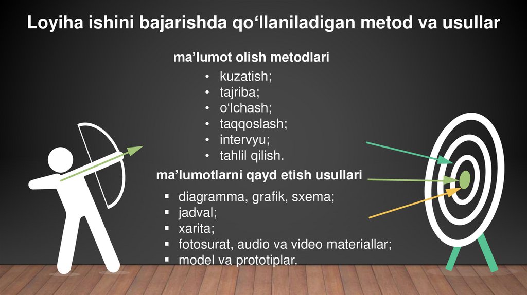 Loyiha ishini bajarishda qo‘llaniladigan metod va usullarma’lumot olish metodlari