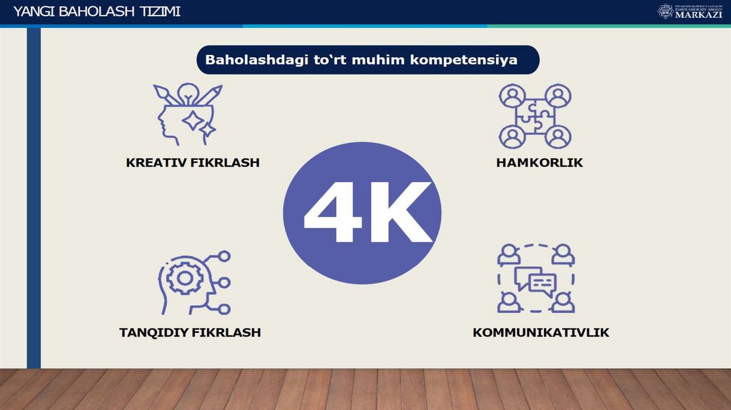 • Formativ baholash – bunda o‘quvchi dars jarayonida baholanib borilaveradi. Mazkur baholash tizimining
