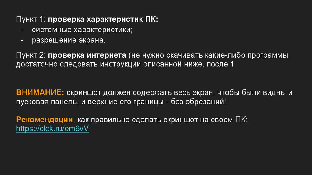 ВНИМАНИЕ: скриншот должен содержать весь экран, чтобы были видны и