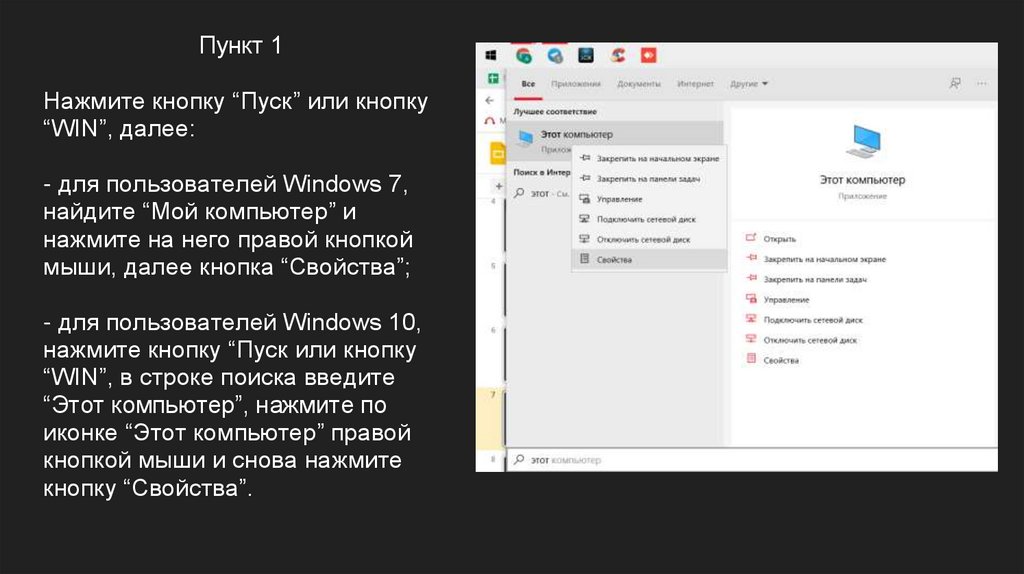Пункт 1Нажмите кнопку “Пуск” или кнопку