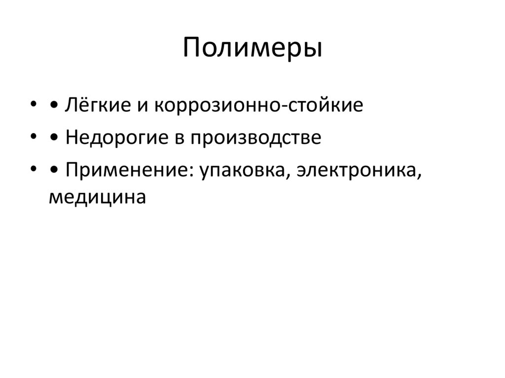 Полимеры• • Лёгкие и коррозионно-стойкие