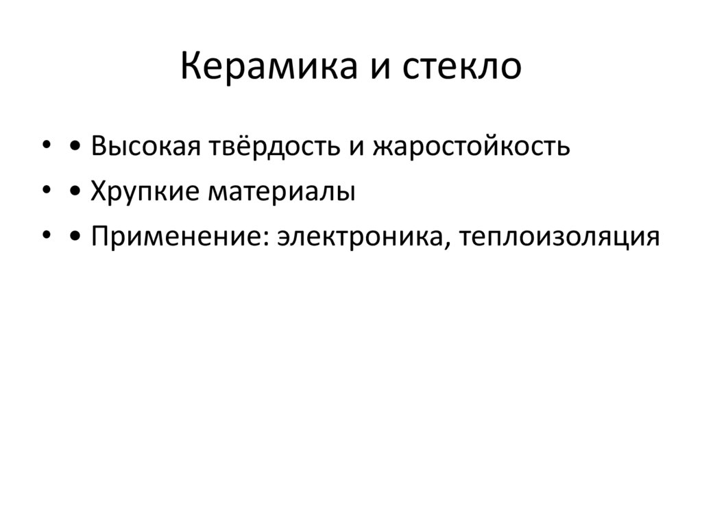 Керамика и стекло• • Высокая твёрдость и жаростойкость