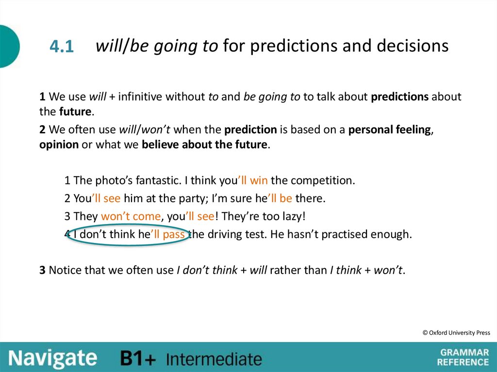 4.1will/be going to for predictions and decisions