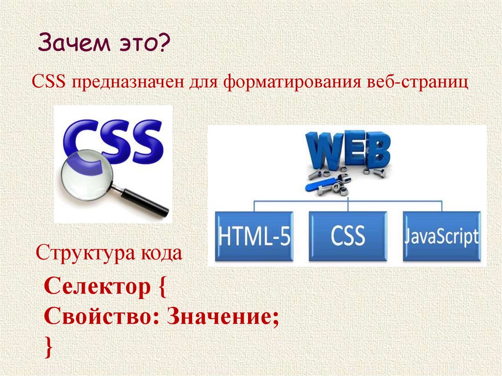 Зачем это?СSS предназначен для форматирования веб-страниц