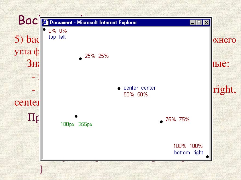 Background5) background-position – положение левого верхнего