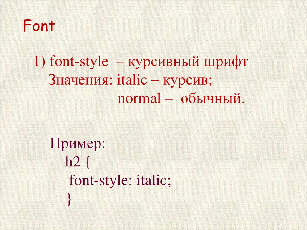 Font1) font-style – курсивный шрифт