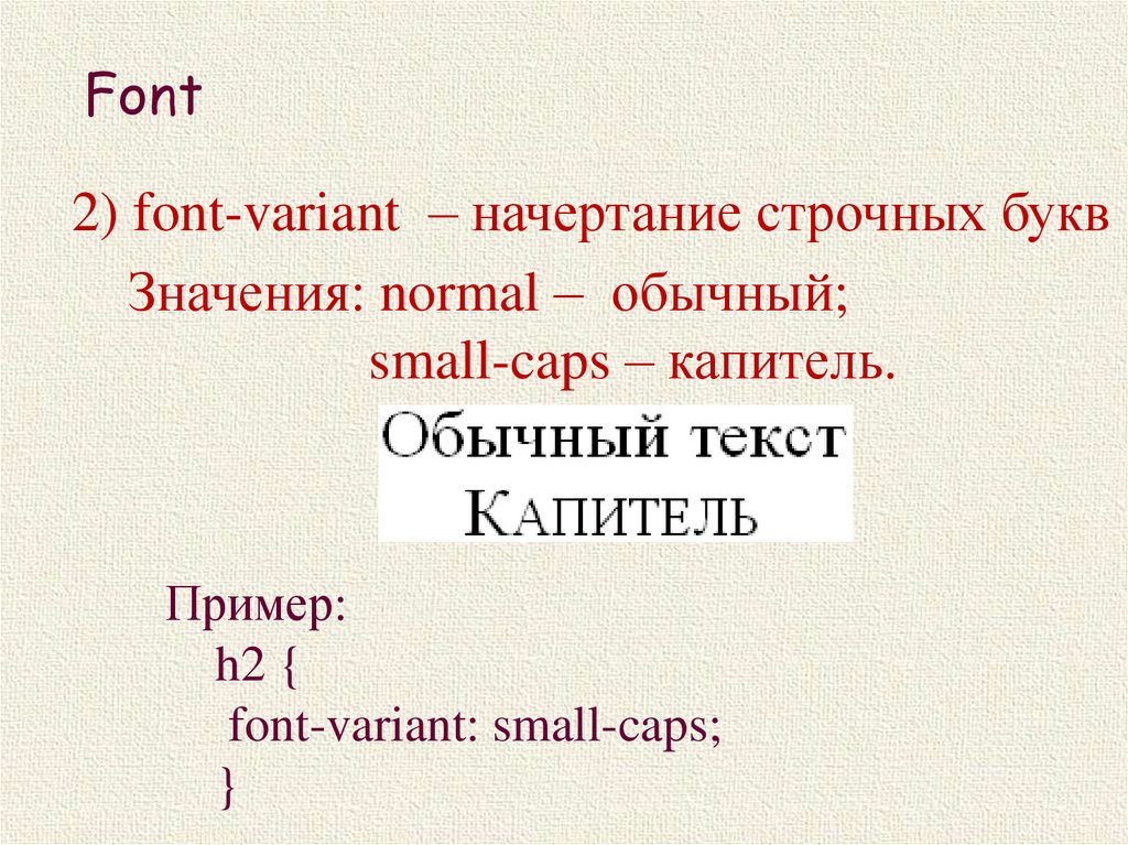 Font2) font-variant – начертание строчных букв