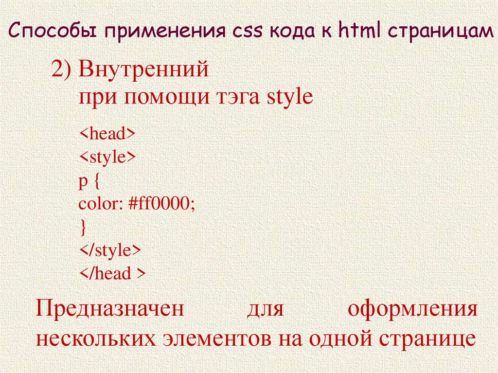 Способы применения css кода к html страницам2) Внутренний