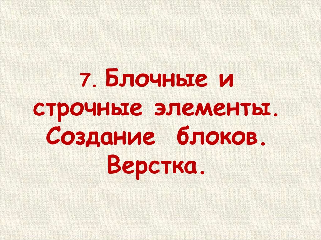 7. Блочные истрочные элементы.