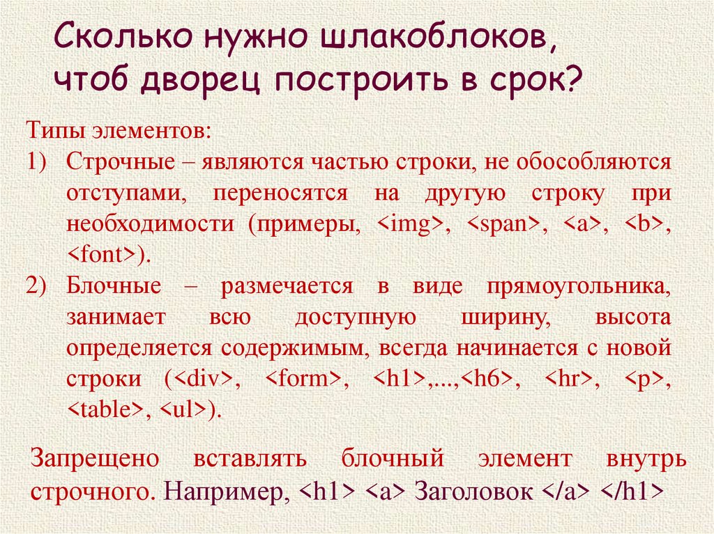 Сколько нужно шлакоблоков,чтоб дворец построить в срок?