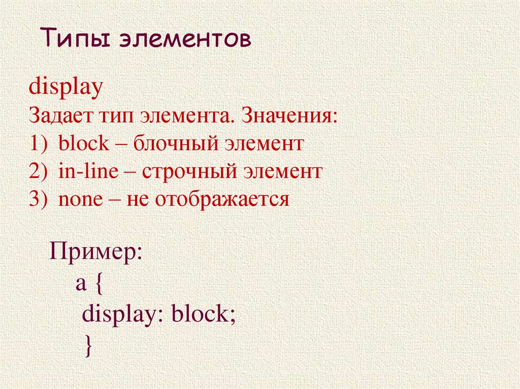 Типы элементовdisplay